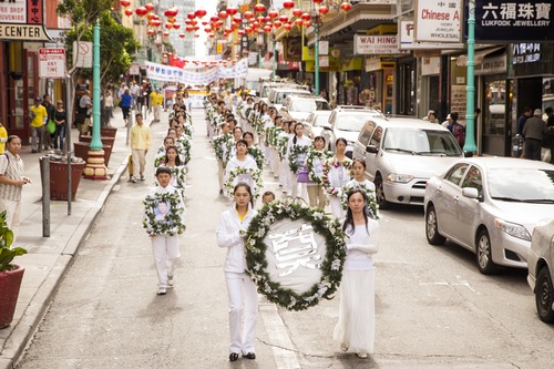 Falun Gong march near the Chinese Consulate and San Francisco City Hall on October 15