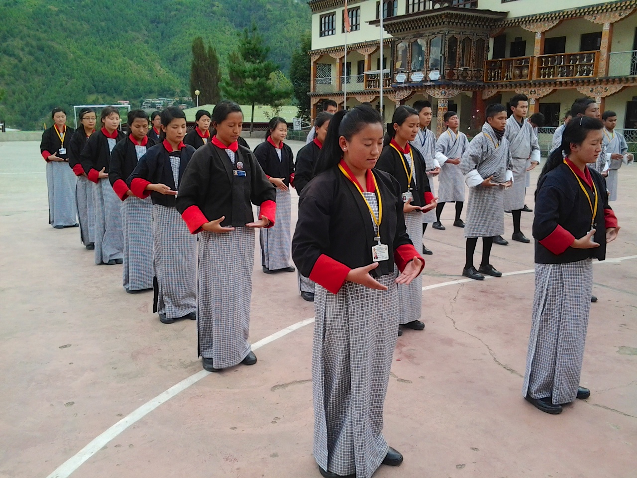The practitioners visited the capital city of Thimpu during a festival on October 3-5, 2014. They went to a school, where they introduced Falun Dafa and taught the exercises. They also told the students and teachers how Falun Dafa practitioners are being persecuted in China.