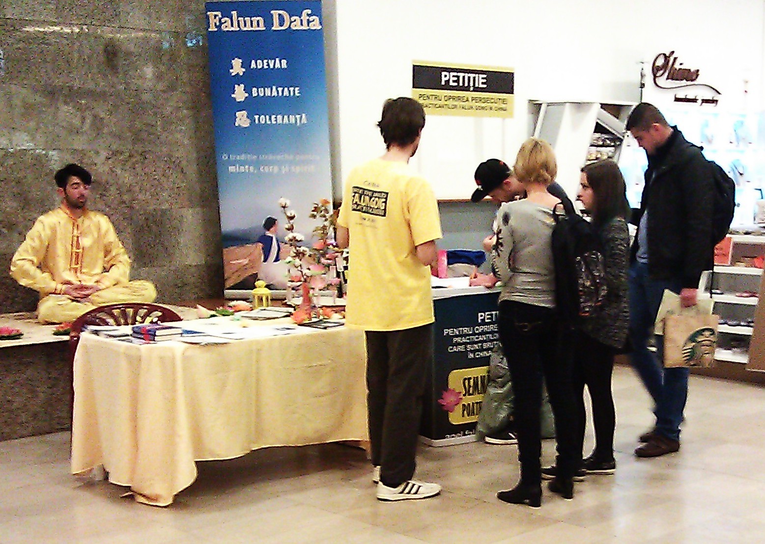 (Minghui.org) On April 4-6, 2014, Falun Gong practitioners in Romania held a three-day event in the Iulius shopping mall in Cluj-Napoca, the second most populous city in Romania.