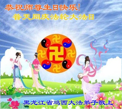 (Minghui.org) Practitioners from Jixi City, Heilongjiang Province, China celebrate World Falun Dafa Day and the 22nd anniversary of Falun Dafa's introduction to the public! Respectfully wishing revered Master a Happy Birthday!