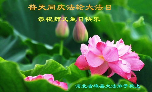 (Minghui.org) Practitioners from Baoding City, Hebei Province, China celebrate World Falun Dafa Day and the 22nd anniversary of Falun Dafa's introduction to the public! Respectfully wishing revered Master a Happy Birthday!