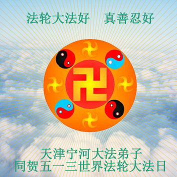 (Minghui.org) Practitioners from Tianjin, China celebrate World Falun Dafa Day and the 22nd anniversary of Falun Dafa's introduction to the public! Respectfully wishing revered Master a Happy Birthday!