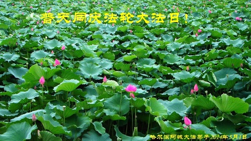 (Minghui.org) Practitioners from Harbin City, Heilongjiang Province, China celebrate World Falun Dafa Day and the 22nd anniversary of Falun Dafa's introduction to the public! Respectfully wishing revered Master a Happy Birthday!