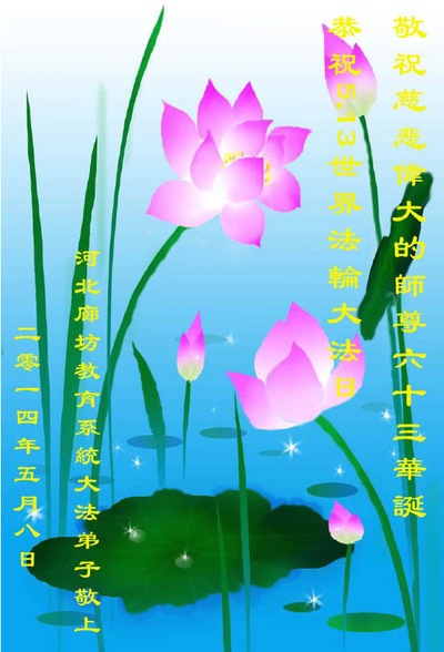 (Minghui.org) With May 13 fast approaching, many Falun Dafa practitioners in the education system are sending in their greetings to wish revered Master a Happy Birthday and to celebrate the 22nd anniversary of Falun Dafa’s public introduction.