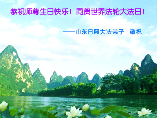 (Minghui.org) Practitioners from Shandong Province, China celebrate World Falun Dafa Day and the 22nd anniversary of Falun Dafa's introduction to the public! Respectfully wishing revered Master a Happy Birthday!