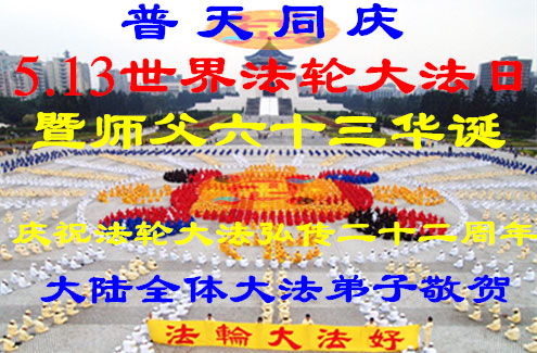 (Minghui.org) Practitioners from across China celebrate World Falun Dafa Day and the 22nd anniversary of Falun Dafa's introduction to the public! Respectfully wishing revered Master a Happy Birthday!
