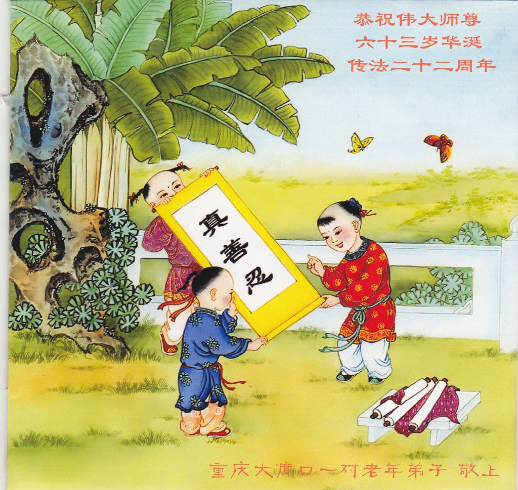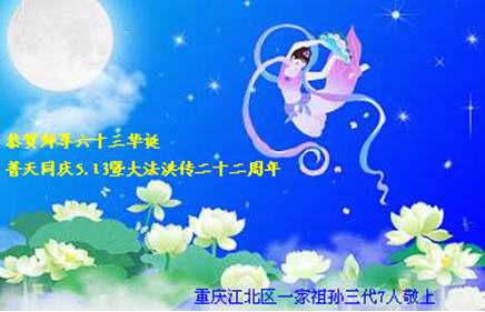 (Minghui.org) Practitioners from Chongqing, China celebrate World Falun Dafa Day and the 22nd anniversary of Falun Dafa's introduction to the public! Respectfully wishing revered Master a Happy Birthday!