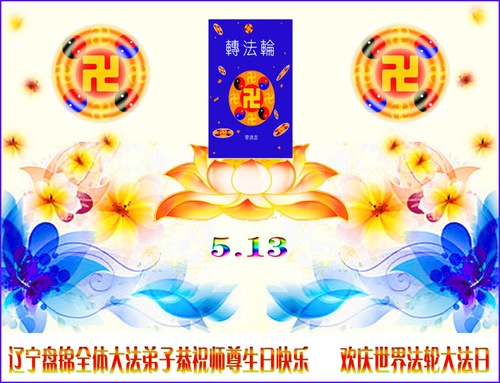 (Minghui.org) Practitioners from Panjin City, Liaoning Province, China, celebrate World Falun Dafa Day and the 22nd anniversary of Falun Dafa's introduction to the public! They respectfully wish revered Master a Happy Birthday!