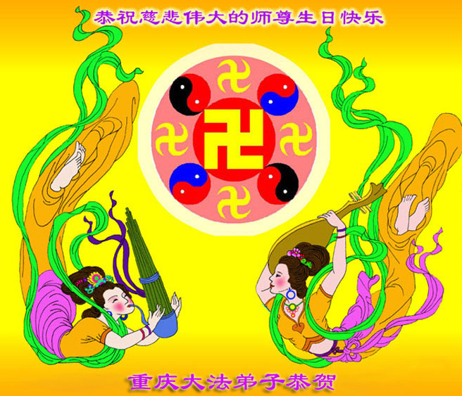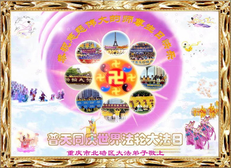 (Minghui.org) Practitioners from Chongqing, China celebrate World Falun Dafa Day and the 22nd anniversary of Falun Dafa's introduction to the public! Respectfully wishing revered Master a Happy Birthday!