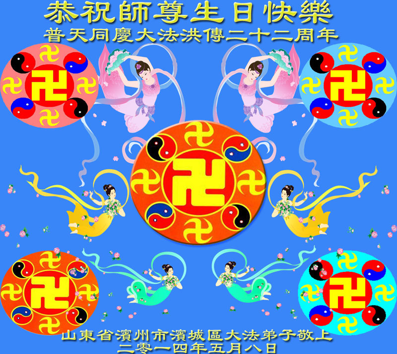 (Minghui.org) Practitioners from Shandong Province, China celebrate World Falun Dafa Day and the 22nd anniversary of Falun Dafa's introduction to the public! Respectfully wishing revered Master a Happy Birthday!