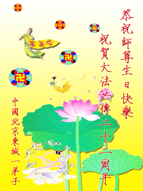 (Minghui.org) Practitioners from China celebrate World Falun Dafa Day and the 22nd anniversary of Falun Dafa's introduction to the public! Respectfully wishing revered Master a Happy Birthday!