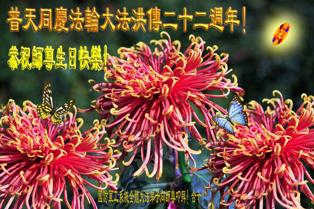 (Minghui.org) Practitioners in the Military System Celebrate World Falun Dafa Day and the 22 nd Anniversary of Falun Dafa's Introduction to the Public! Respectfully Wishing Compassionate, Great Master a Happy Birthday!