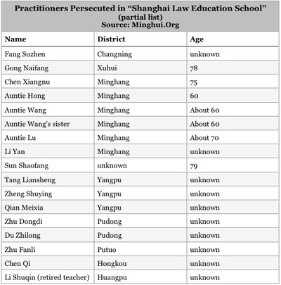 Below is a partial list of practitioners who have recently been persecuted in the brainwashing center in Shanghai: