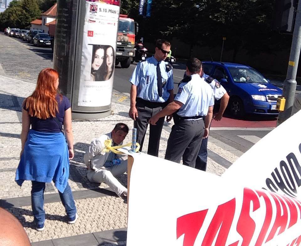 (Minghui.org) Czech Republic police arrested a Chinese embassy official and two members of the “welcome group” on August 28, 2014, in Prague, during a Chinese delegation visit.