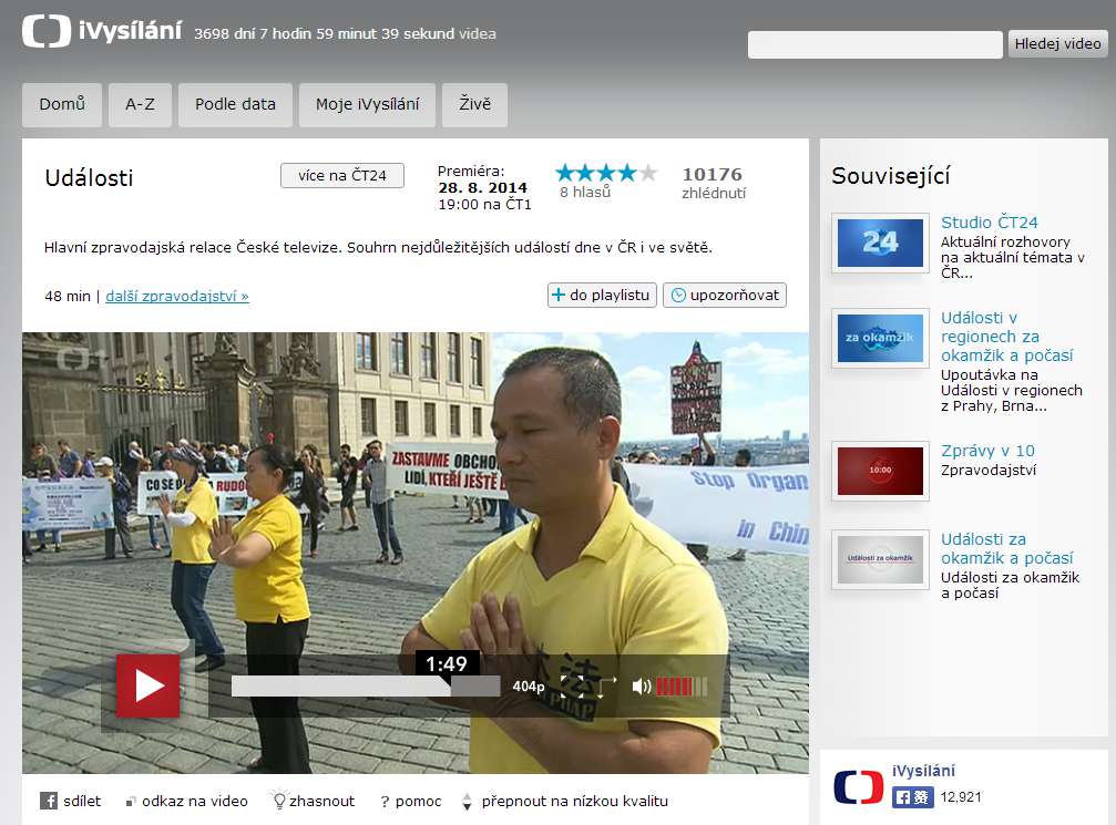 News report from Czech Television about Zhang Gaoli’s crimes and what happened during the protest at Prague Castle.