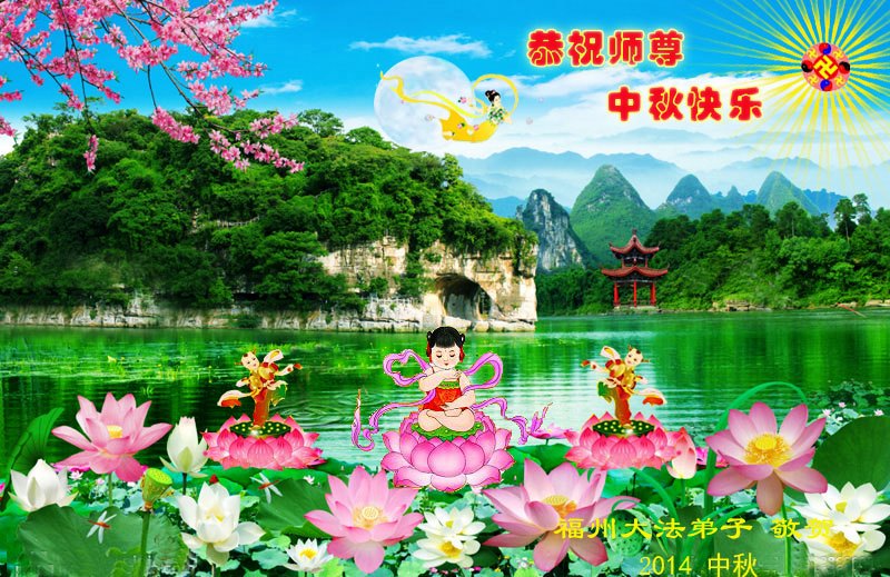 (Minghui.org) For the occasion of the 2014 Mid-Autumn Festival (also known as Moon Festival), Falun Dafa practitioners both inside and outside China have sent greetings to the founder of Falun Dafa, Master Li Hongzhi. Along with the written greetings are scores of homemade greeting cards, poems and photographs expressing gratitude and wishes to Master Li for a Happy Mid-Autumn Festival.