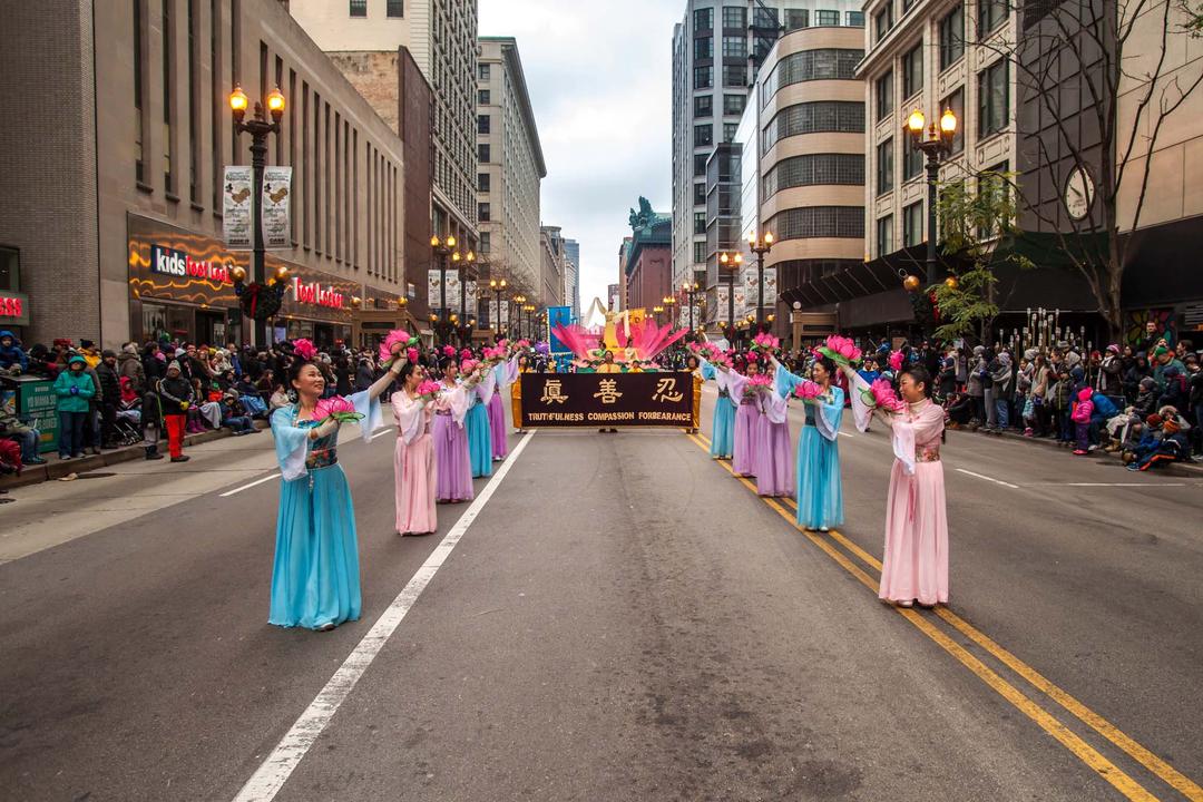 Falun Dafa practitioners participate in the 83rd Thanksgiving Parade in Chicago on November 24, 2016.