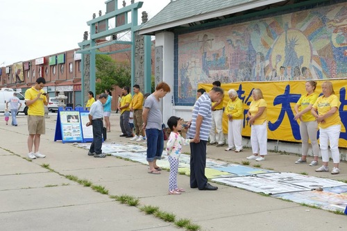 (Minghui.org) During a Falun Gong march through Chicago’s Chinatown on July 30, 2016, Alex, from Michigan, commented, “Fairy lady dancing, lotus flowers, and traditional music, everything was so wonderful. Then, all of sudden we saw forced organ harvesting and genocide. The contrast is so dramatic.”