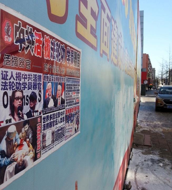 Poster exposing the Chinese Communist Party's state-sanctioned killing of Falun Gong practitioners and harvesting their organs.