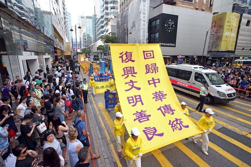 Crowds of Chinese tourists watched the parade. Many were shocked, but in a good way, to see such a grand display and commented on the freedom in Hong Kong, which people in China do not enjoy. Many of them expressed their support for practitioners in their fight for freedom of belief.