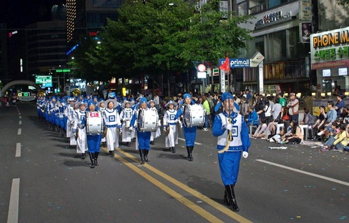 (Minghui.org) Falun Gong's Tian Guo Marching Band in South Korea participated in the 2017 “Colorful Daegu Festival” parade hosted by the Daegu City government on May 27, 2017.