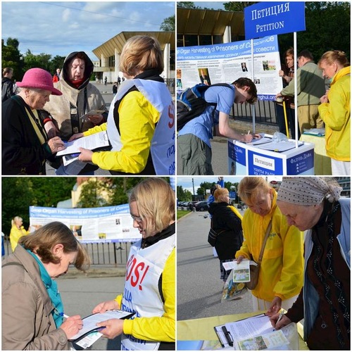 In a rally on Rifleman's Square, the group displayed banners that read, “Falun Dafa is good” and “Stop the CCP's live organ harvesting.” They also collected signatures to condemn the organ harvesting atrocities in China. A group practice of the Falun Gong exercises followed.