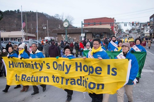 Falun Gong entry in the Port Jervis Christmas parade on December 9, 2018.