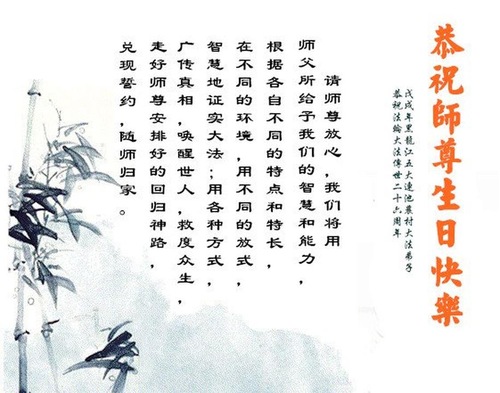 (Minghui.org) World Falun Dafa Day is just around the corner, and practitioners who live in China’s rural areas are sending their greetings to wish revered Master Li Hongzhi a Happy Birthday and to celebrate the 26th anniversary of Falun Dafa’s public introduction.