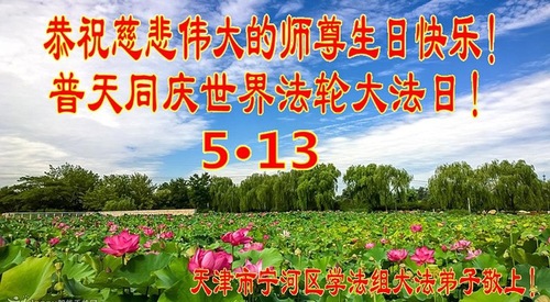 Practitioners from Tianjin Wish Revered Master a Happy Birthday and Celebrate World Falun Dafa Day!
