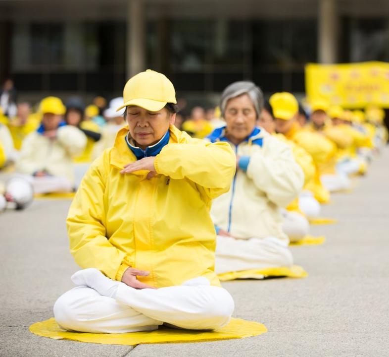 Elected officials and Falun Gong practitioners shout, “Falun Dafa is good!”