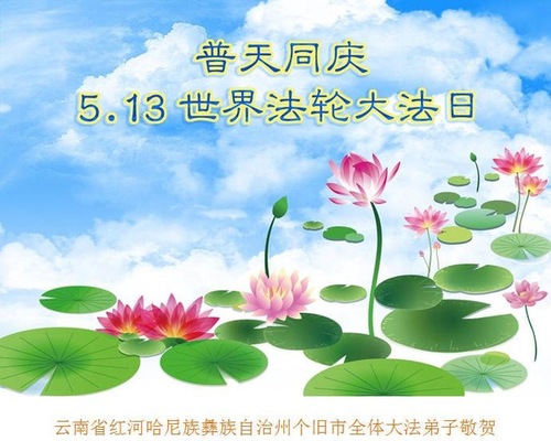 One practitioner from Mongolia ethnic group in Bairin Right Banner, Inner Mongolia, wrote“May flowers brings spring and hope,we practitioners miss Master and hope for a reunion;On World Falun Day I am still detained in prison,but my heart sends the best greetings to Master.”