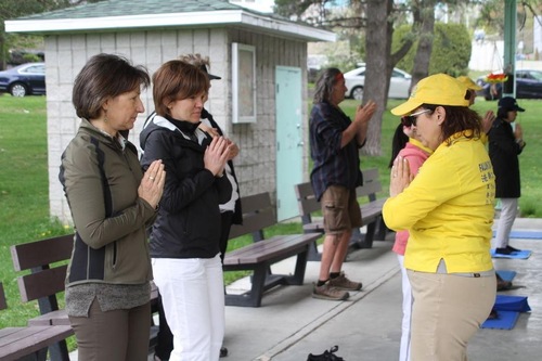 Mélissa Mongeau (front) demonstrates Falun Gong exercises.