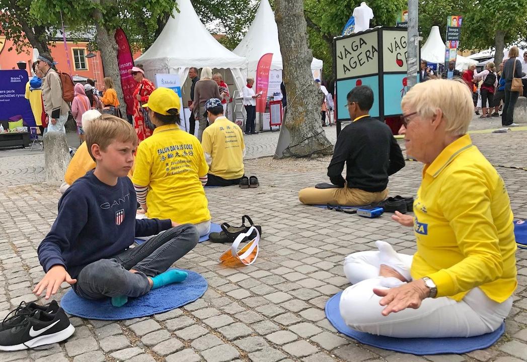(Minghui.org) Almedalen Week, also known as Politician's Week – Sweden's most important annual political forum – was held on the Island of Gotland from July 1 through July 8. As visitors and local citizens got to meet and mingle with local and national politicians, they also came across Falun Gong practitioners demonstrating the meditative exercises and raising awareness of the persecution of Falun Gong (also called Falun Dafa) in China.