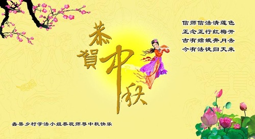 (Minghui.org) The Mid-Autumn Festival falls on September 24 this year. Falun Dafa practitioners in China's rural areas have sent greeting messages and homemade cards to the founder of Falun Dafa, Master Li Hongzhi, to wish him a Happy Mid-Autumn Festival.