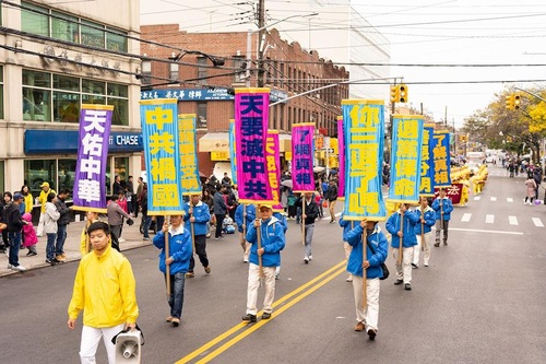 (Minghui.org) Falun Dafa practitioners celebrated over 340 million people withdrawing from the Chinese Communist Party (CCP) with a parade along Brooklyn's eighth avenue – one of New York city's three largest Chinese neighborhoods on the afternoon of October 20, 2019.