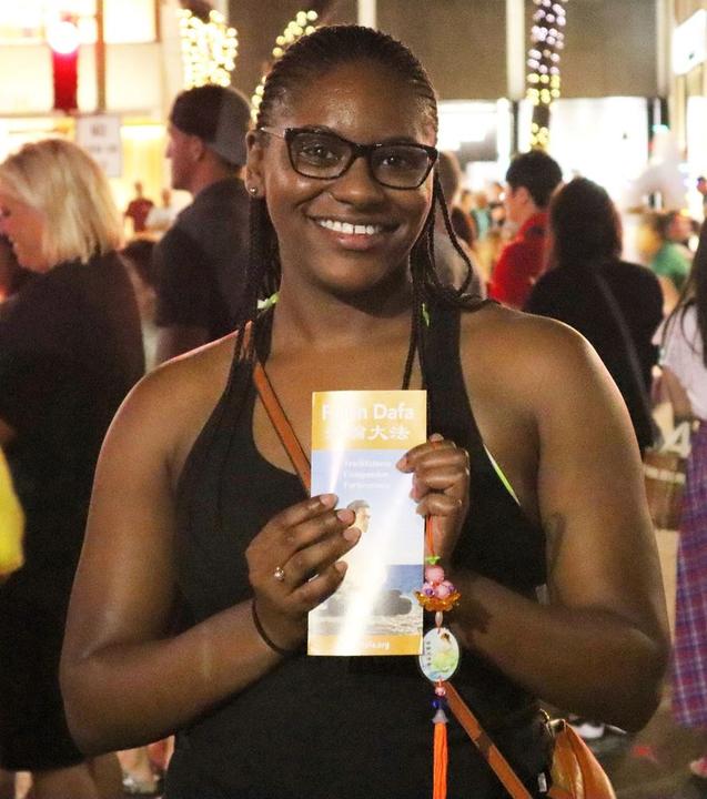 Nia Liberty, from Africa, said that this was the first time she heard of the spiritual practice. She gladly took the brochure about Falun Dafa and said she would read it and check the website.