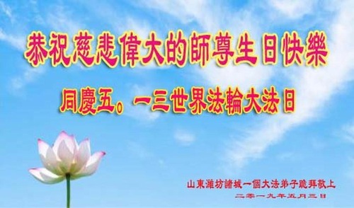 Practitioners from Weifang City Wish Revered Master a Happy Birthday and Celebrate World Falun Dafa Day!