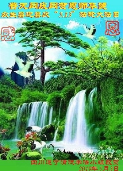 Practitioners from Sichuan Province Wish Revered Master a Happy Birthday and Celebrate World Falun Dafa Day!