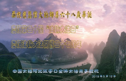 Practitioners from Zhangjiakou City Wish Revered Master a Happy Birthday and Celebrate World Falun Dafa Day!