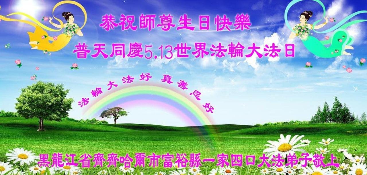 Practitioners from Qiqihar City Wish Revered Master a Happy Birthday and Celebrate World Falun Dafa Day!