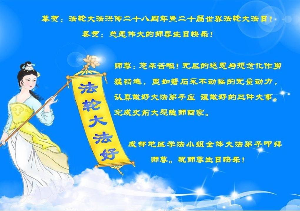 (Minghui.org) In this report, we present a selection of the 21 greetings sent from Falun Dafa practitioners in Chengdu City, Sichuan Province, China: