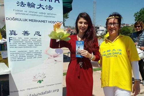 The organizer of the event, Hatice Bozkurt (left), told practitioners that the festival would not have had the diversity nor would it have been so rich, if it wasn't for Falun Gong's participation. She invited practitioners to attend another local community event.