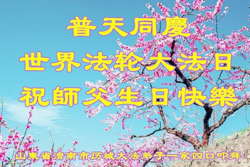 Practitioners from Jinan City Wish Revered Master a Happy Birthday and Celebrate World Falun Dafa Day!