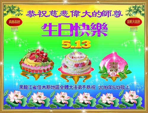 Practitioners from Jiamusi City Wish Revered Master a Happy Birthday and Celebrate World Falun Dafa Day!