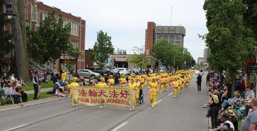 Falun Dafa practitioners participate in Oshawa's Father's Day Fiesta Parade on Sunday, June 16, 2019.
