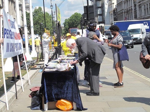 Lord Hylton of the House of Lords has been supportive of practitioners' efforts for years. He attended the rally and signed the petition to protest the persecution. He said that it was important to let the public know about Falun Gong and that he hoped the persecution would end soon.