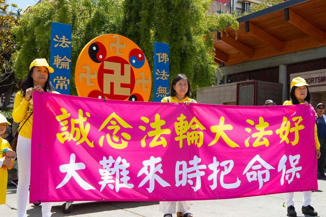 Falun Gong practitioners hold a rally on Portsmouth Square in San Francisco's Chinatown on July 20, 2019.