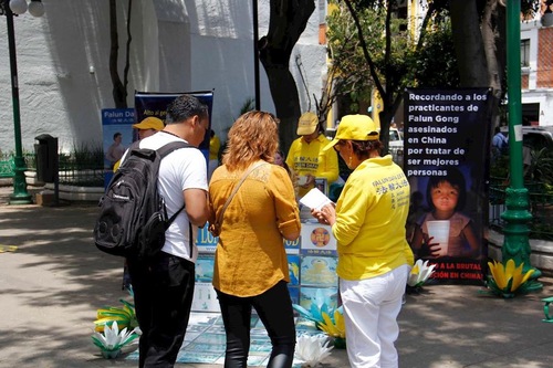 Practitioners introduced Falun Dafa to local residents in Guadalajara in western Mexico. Many people in Guadalajara expressed outrage about the persecution in China and told practitioners they hoped the terrible situation would change soon.