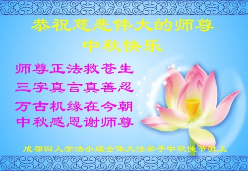 Falun Dafa Practitioners from Chengdu City Wish Revered Master a Happy Mid-Autumn Festival!