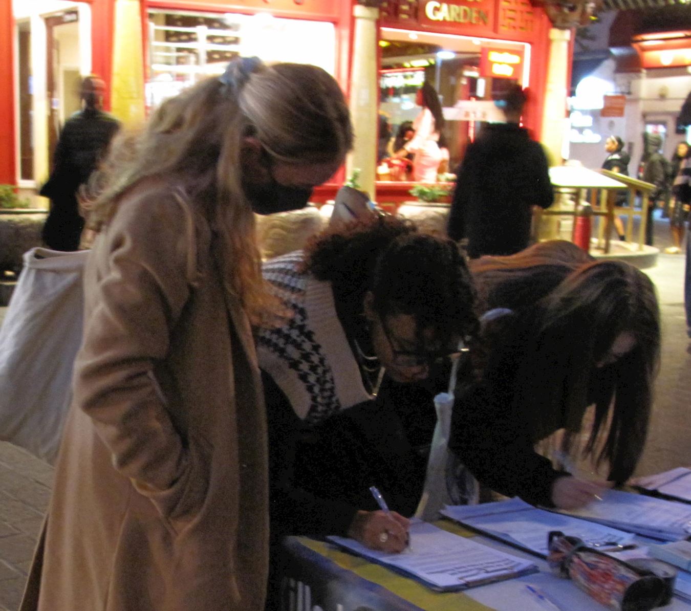 Passersby sign the petition calling to end the brutality against Falun Gong practitioners in China